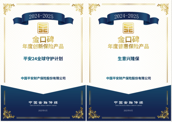 近日,《中国银行保险报》发布了2024-2025“金口碑”年度保险产品,平安产险“平安24全球守护计划”获得“金口碑”年度创新保险产品,“生意兴隆保”获得“金口碑”年度普惠保险产品。这不仅是对平安产险持续创新保障产品的高度认可,更是对平安产险坚持践行金融为民初心的肯定。