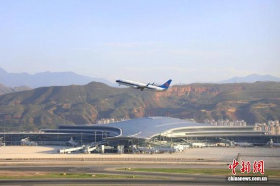 图为飞机从西宁曹家堡国际机场起飞。青海机场公司 供图