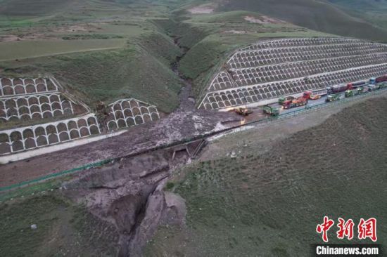 图为航拍青海省境内g6京藏高速扎倒路段中断。(无人机照片) 青海省交通运输厅供图