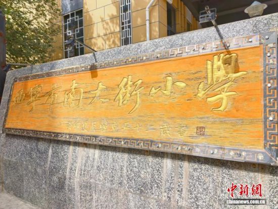 图为西宁市南大街小学由学生书写的校牌。 祁增蓓摄