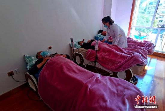 资料图为社区工作人员为辖区老人提供康复服务。李隽 摄