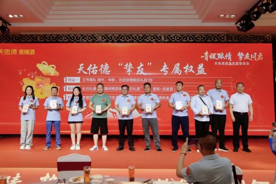 在新品品鉴环节,天佑德邀请挚友们担任“品鉴官”,体验尚未上市的新品青稞酒。大家依照活动引导,观察酒液色泽、轻嗅酒香、品味口感,感受藏在酒中的独特韵味。随后,通过扫描屏幕二维码填写问卷,猜测新品的价格段、年份与度数。活动方将为盲猜最准确的参与者送上精心准备的“共鉴礼”,以此鼓励大家深入了解产品。活动现场还举行了备受瞩目的“天佑德挚友授牌”仪式。这些挚友是通过大数据平台,从天国家人系列、出口系列等9个品相的扫码量数据中脱颖而出的佼佼者,他们凭借对天佑德产品的高频互动与支持,成为品牌挚友。