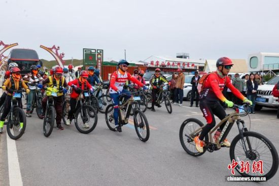 图为活动环湖骑行体验环节,来自全国各地的骑友开启环湖骑行之旅。薛蒂摄