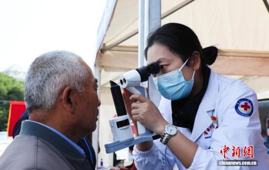 资料图为医护人员为西宁市民义诊。马铭言 摄