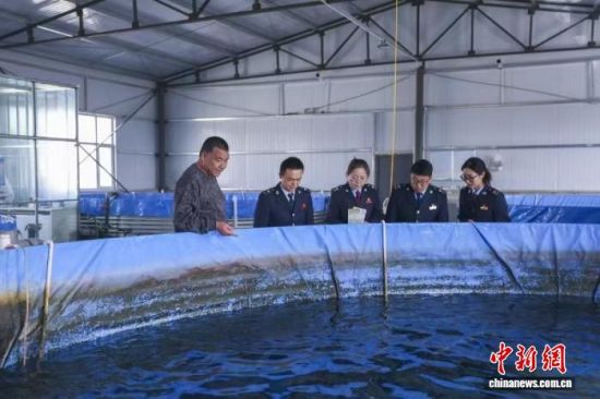 资料图为税务干部聚焦冷水鱼养殖特点靶向服务农企农户。唐剑 摄